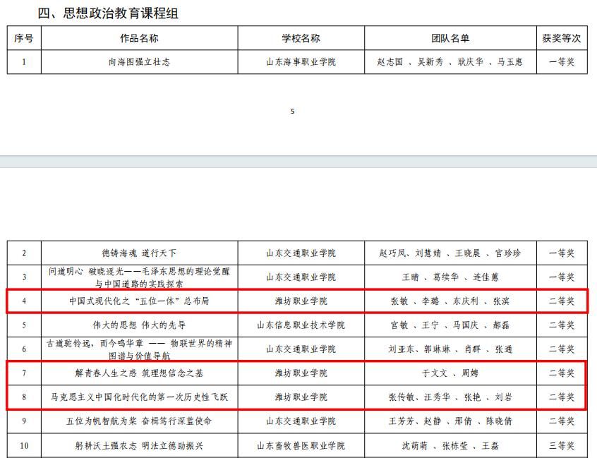 在2025年潍坊市职业院校技能大赛教学能力比赛(高职组)中,2007so太阳集团3支教师团队获思想政治教育课程组3项二等奖。